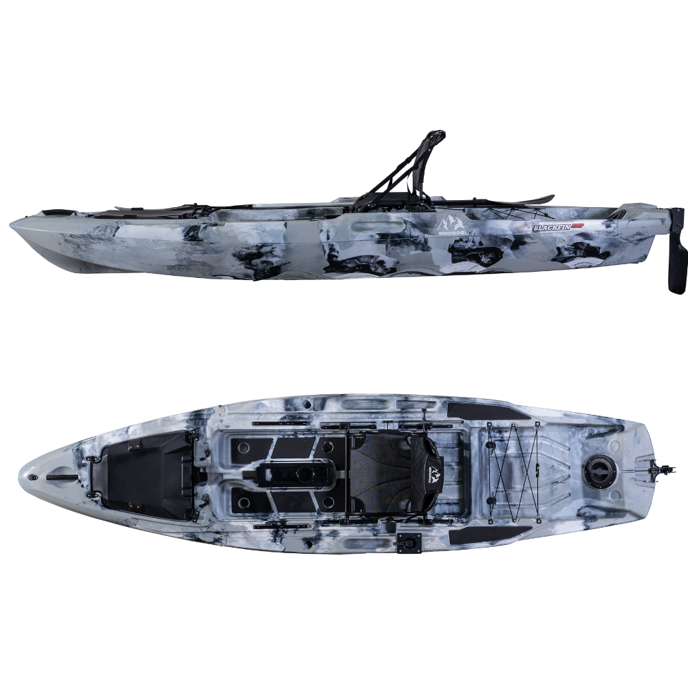 The Hoodoo Blackfin 120P is a 12-foot propeller-drive pedal kayak built for anglers who want a premium fishing platform with confident stability, precise control, and room to customize. Its prop-drive system with instant forward and reverse delivers smooth, responsive propulsion, making it easy to maneuver around structure or cover water efficiently.