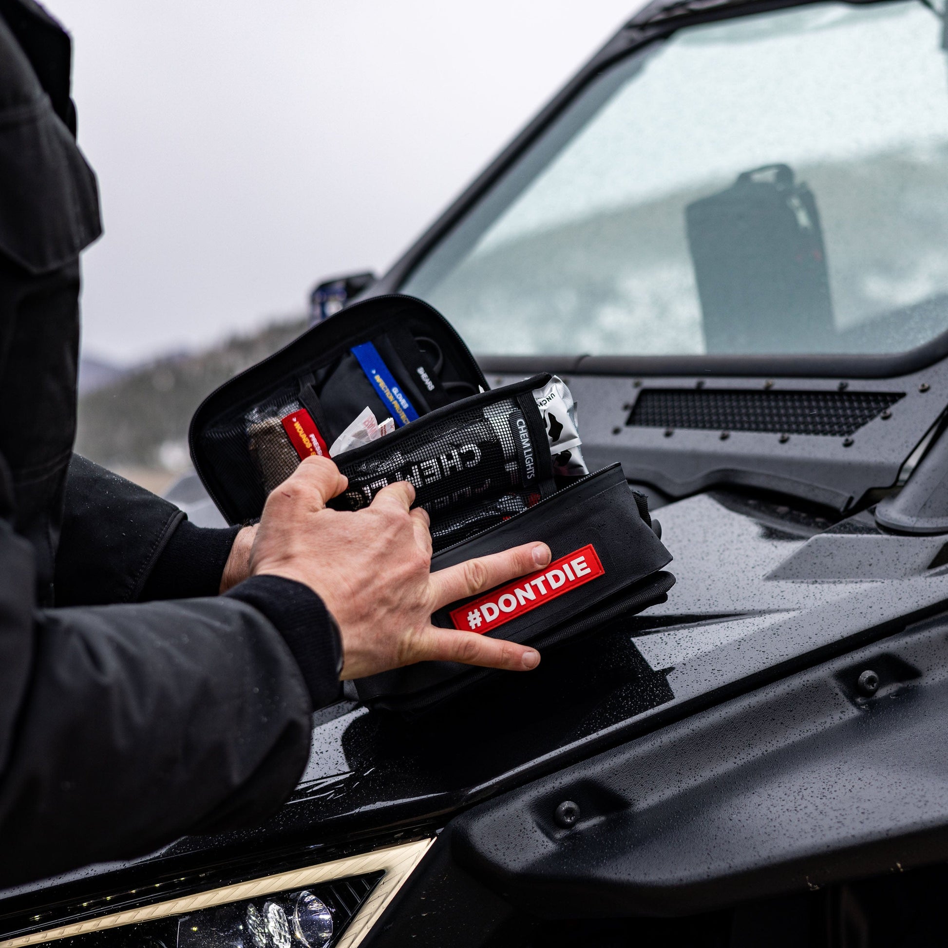 and engineered to withstand extreme environments. And with its Velcro tear-away MOLLE backer, it can be securely mounted to ATVs, trucks, campers, snowmobiles, and bikes. The tear-away design makes it fast and easy to grab in an emergency, so you’ll never waste precious seconds when you need it most.