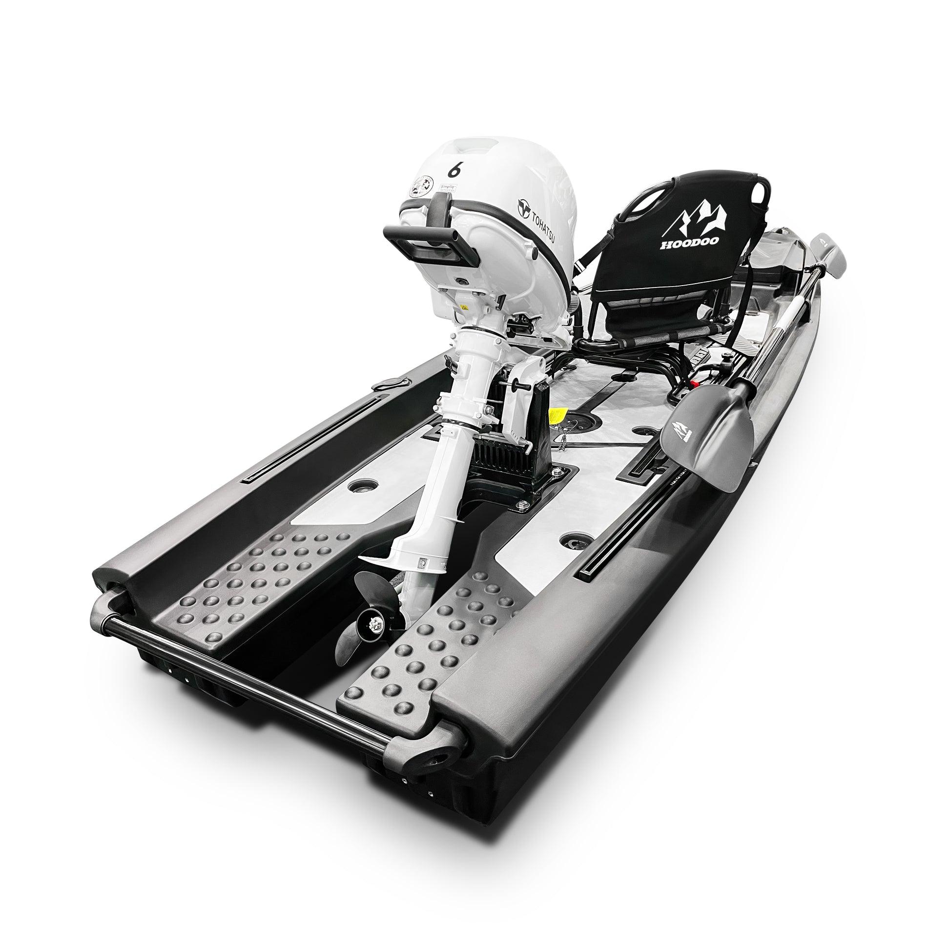 Can be paddled, powered by a fin drive system, or outfitted with an outboard motor up to 6 hp (motor not included).