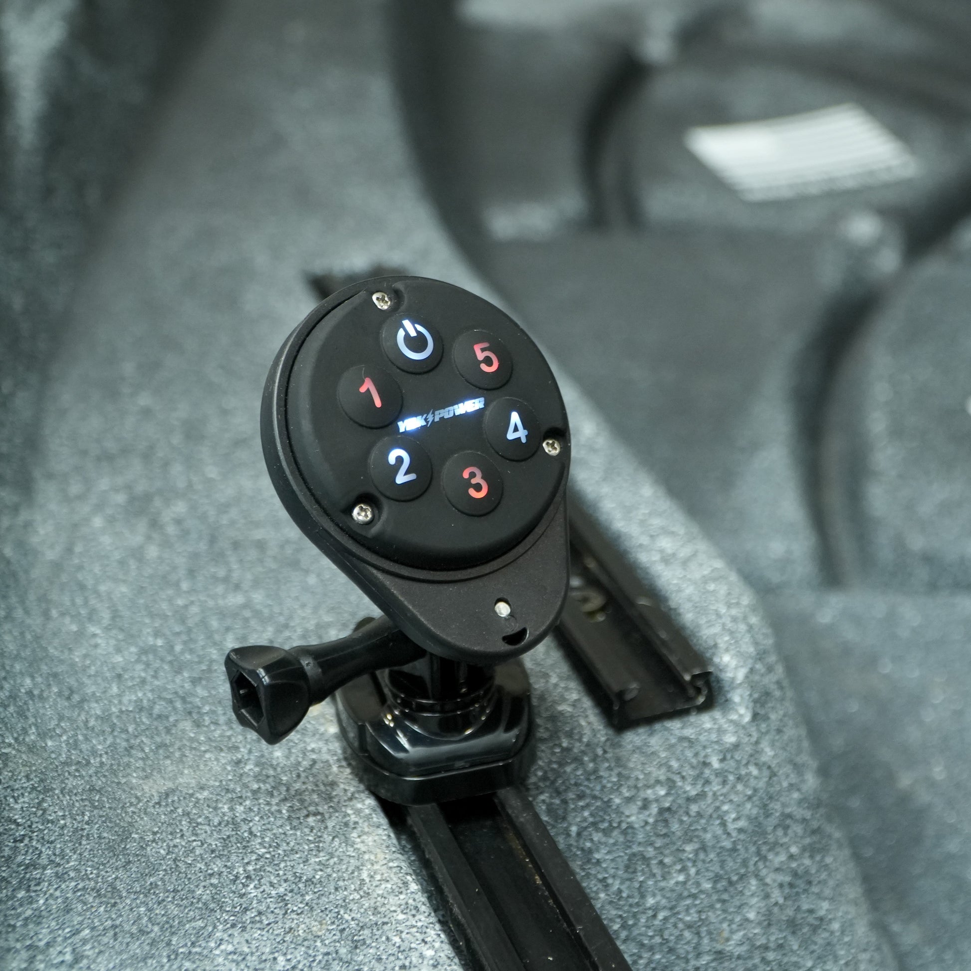 The Yak Power Portable Power Station is the ultimate power solution for your outdoor adventure! Featuring 5 switched outlets, battery powered keypad with quick disconnect base, t-nut rail track mounting, integrated Bluetooth with mobile app control, last memory mode, inline 15A fuse, and Yak Power plug-and-play connectivity make plugging in and powering your 12-volt accessories easy. The compact and waterproof design can hold up to three 7AH batteries or two 12AH batteries (batteries NOT included) while still being small enough to stow away. And, the integrated external, dual USB charging port ensures that both your mobile device and outdoor action camera have all the power they need to capture all the action. All accessories are connected and controlled independently using individual buttons. Each button turns RED when it is activated.